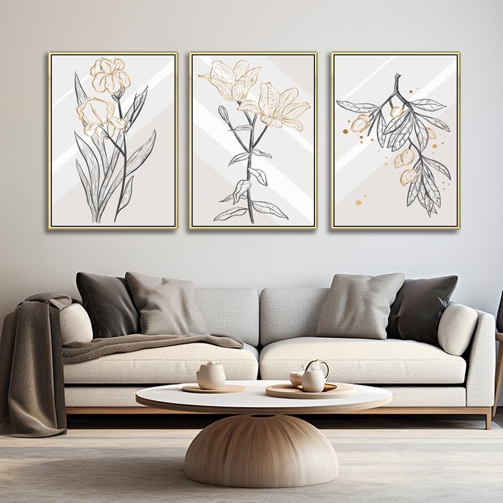 طقم من 3 لوحات ثلاثية ورد بتصميم عصري