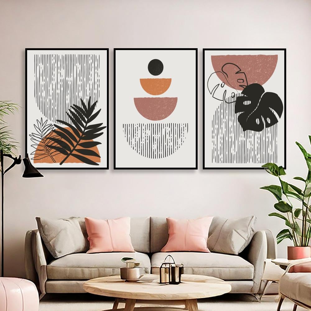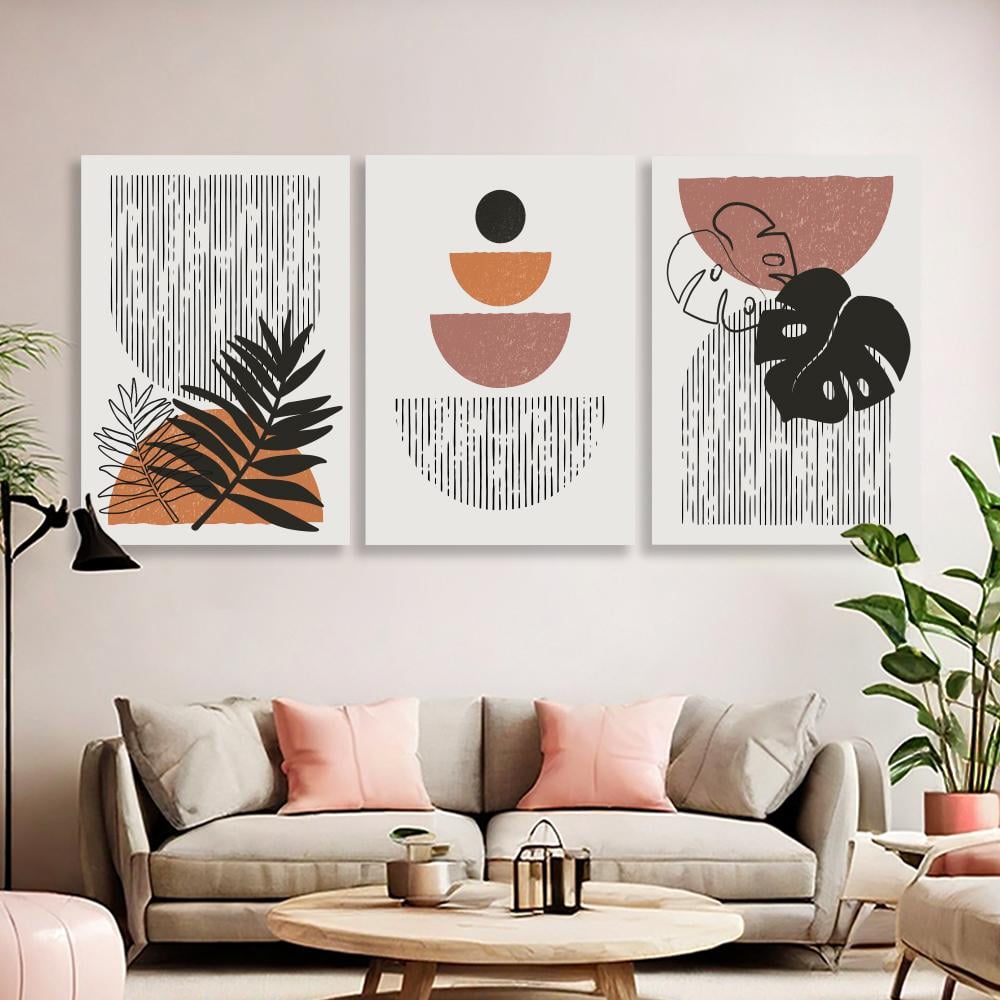 طقم من 3 لوحات ثلاثية ورود بتصميم عصري