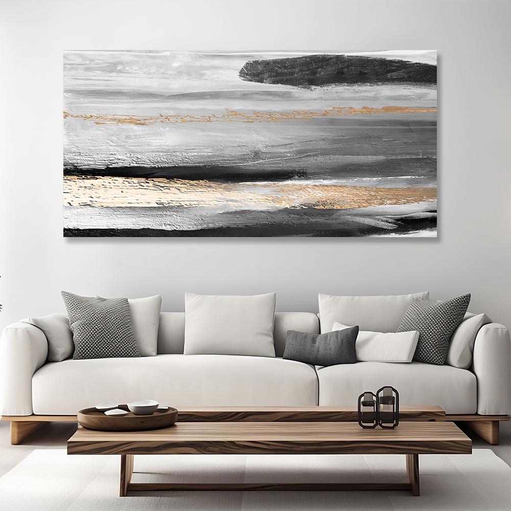أضف لمسة من الفخامة العصرية لديكور منزلك مع هذه اللوحة الجدارية التجريدية المطبوعة على ورق كانفاس عالي الجودة. تتميز بتصميم فني يجمع بين درجات الأسود، الرمادي، ولمسات ذهبية أنيقة، مما يجعلها مثالية لإضافة عمق ورقي لأي مساحة. لوحة ديكور فنية عصرية تناسب غرف المعيشة، المكاتب، أو المداخل.